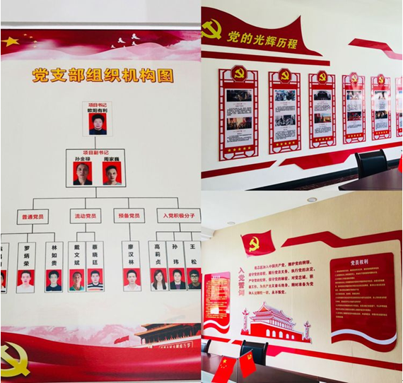 該支部還專門設立了黨支部活動室?;顒邮覍嵭?/span>“一旗(黨旗)一誓詞(入黨誓言)兩制度(支部工作職責、學習計劃)”上墻,配備桌椅、投影儀、電腦、書櫥等硬件設施,學習紀錄、活動安排等記載詳細并及時公開,為一線黨員創(chuàng)造了良好的學習條件。進一步提升項目部黨員黨性修養(yǎng),夯強了黨建基礎工作,充分發(fā)揮了黨組織的戰(zhàn)斗堡壘作用。讓黨員活動室成為黨性鍛煉之“爐”、凝聚人心之“橋”、展示作為之“窗”,是項目部加強黨建工作的又一重要舉措。