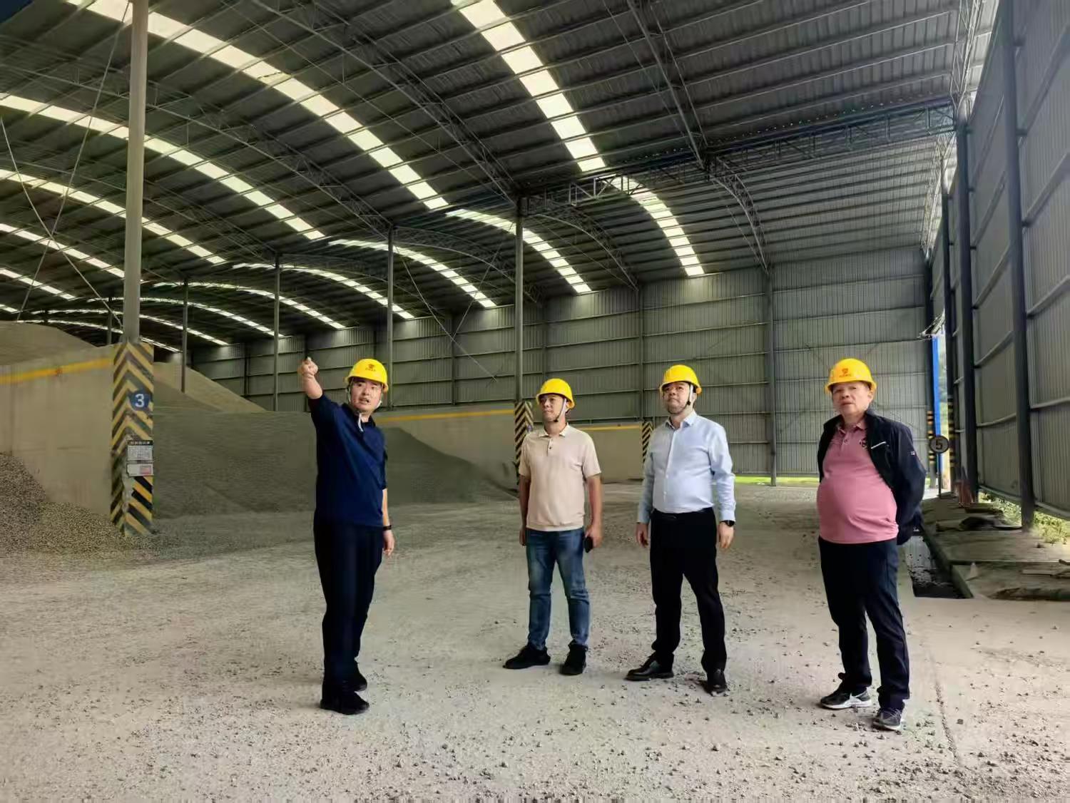 座談會(huì)后,林顯峰董事長一行前往項(xiàng)目多集中拌合站考察建設(shè)情況。在現(xiàn)場(chǎng),領(lǐng)導(dǎo)團(tuán)隊(duì)查看了試驗(yàn)室各個(gè)科室、設(shè)備配置、料倉分區(qū)等,重點(diǎn)詢問了原材料進(jìn)場(chǎng)檢驗(yàn)流程、生產(chǎn)效率及環(huán)保措施落實(shí)情況。針對(duì)拌合站建設(shè),林顯峰董事長提出指導(dǎo)意見:要優(yōu)化料源統(tǒng)籌,建立質(zhì)量追溯機(jī)制,確保關(guān)鍵材料性能穩(wěn)定;要強(qiáng)化設(shè)備維護(hù),定期對(duì)設(shè)備進(jìn)行檢修保養(yǎng),避免影響施工進(jìn)度;要推進(jìn)信息化升級(jí),利用智能監(jiān)控系統(tǒng)監(jiān)測(cè)指標(biāo),實(shí)現(xiàn)生產(chǎn)“可視化、可追溯”,保障路面施工質(zhì)量。