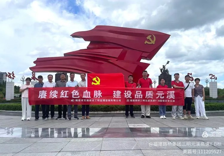 為慶祝中國共產(chǎn)黨成立104周年,傳承紅色基因,凝聚奮進(jìn)力量, 2025年6月30日,三明元溪高速Y-B段項(xiàng)目黨支部聯(lián)合福建省交通建設(shè)工程監(jiān)理咨詢有限公司第八黨支部組織黨員前往寧化縣開展以“賡續(xù)紅色血脈 建設(shè)品質(zhì)元溪”為主題的黨日活動(dòng)。